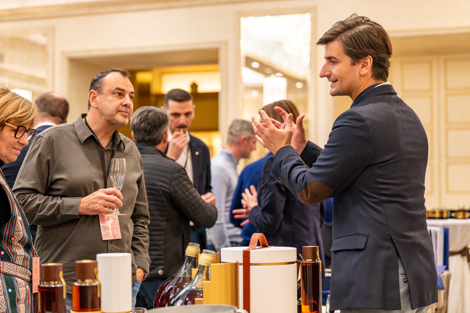 Our presence was spread over three unforgettable evenings, punctuated by a sumptuous gala dinner, two lunches, and an exclusive lounge dedicated to meetings and tasting. During a presentation led by François de La Giraudière, General Manager of Coutanseaux Aîné, each chef had the opportunity to discover all the complexity and aromatic finesse of our cognacs. This privileged moment, sublimated by the rifle service, highlighted our majestic tasting ritual, thanks to our 5-liter carafe, La Belle Jeanne.