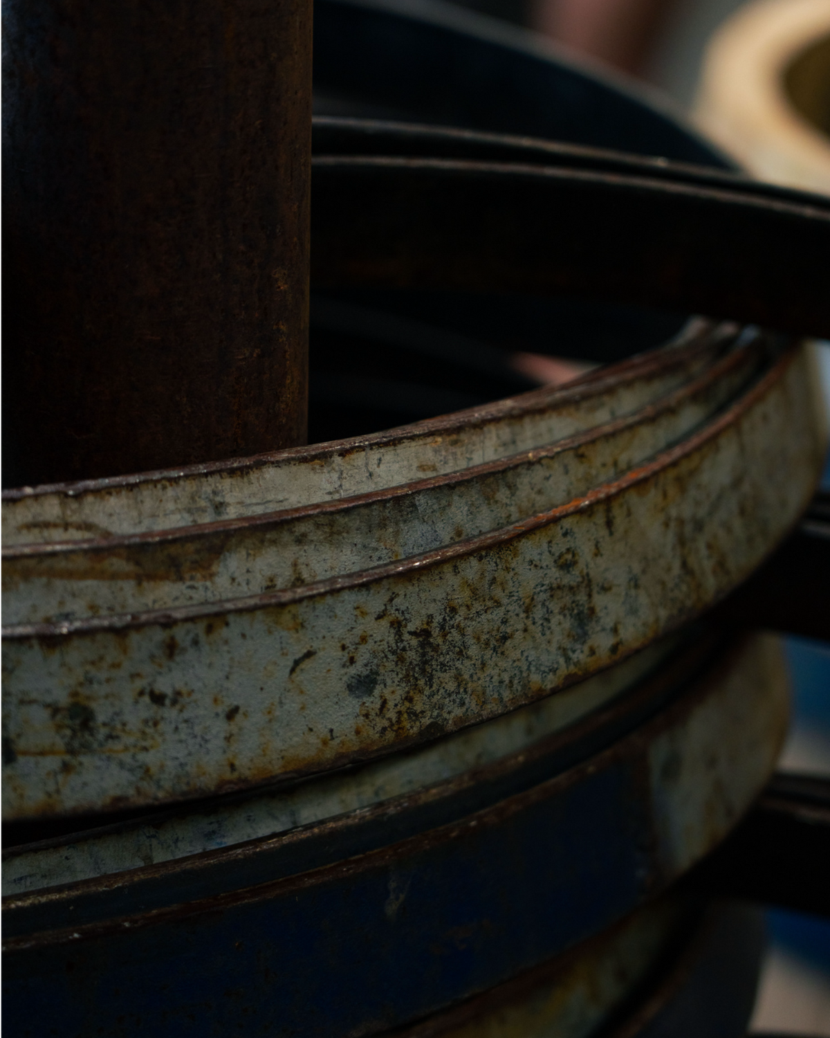 L’élément métal fait référence à plusieurs éléments charnières de la fabrication des cognacs Coutanseaux Aîné : le cuivre des alambics, les arceaux des tonneaux. A la façon d’un gardien du temple, le métal participe à la préservation de notre savoir-faire.